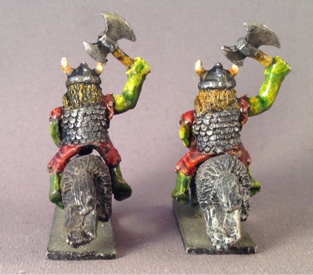 I bought these in my very early Roleplaying days on one of my first visits to GW Hammersmith, back when it was the only shop in the chain (1978). The wolves were painted back then, and I recently dug out the riders and finished them off.